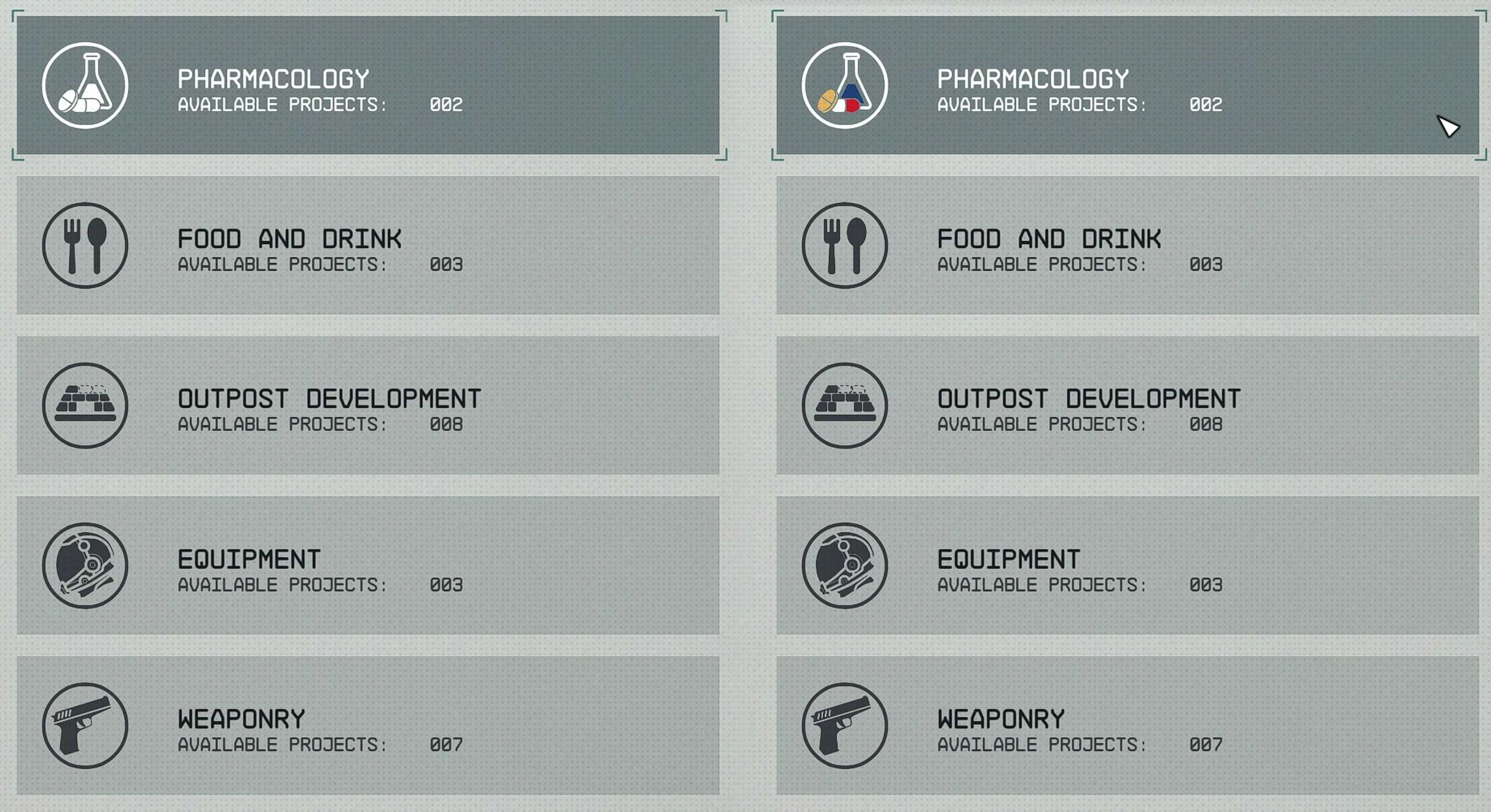 This mod replaces the selected icons in the Research Laboratory with colored versions, as I didn’t like them all white when you select one of the categories. It also stands out more now when you are in the Research Projects screen.