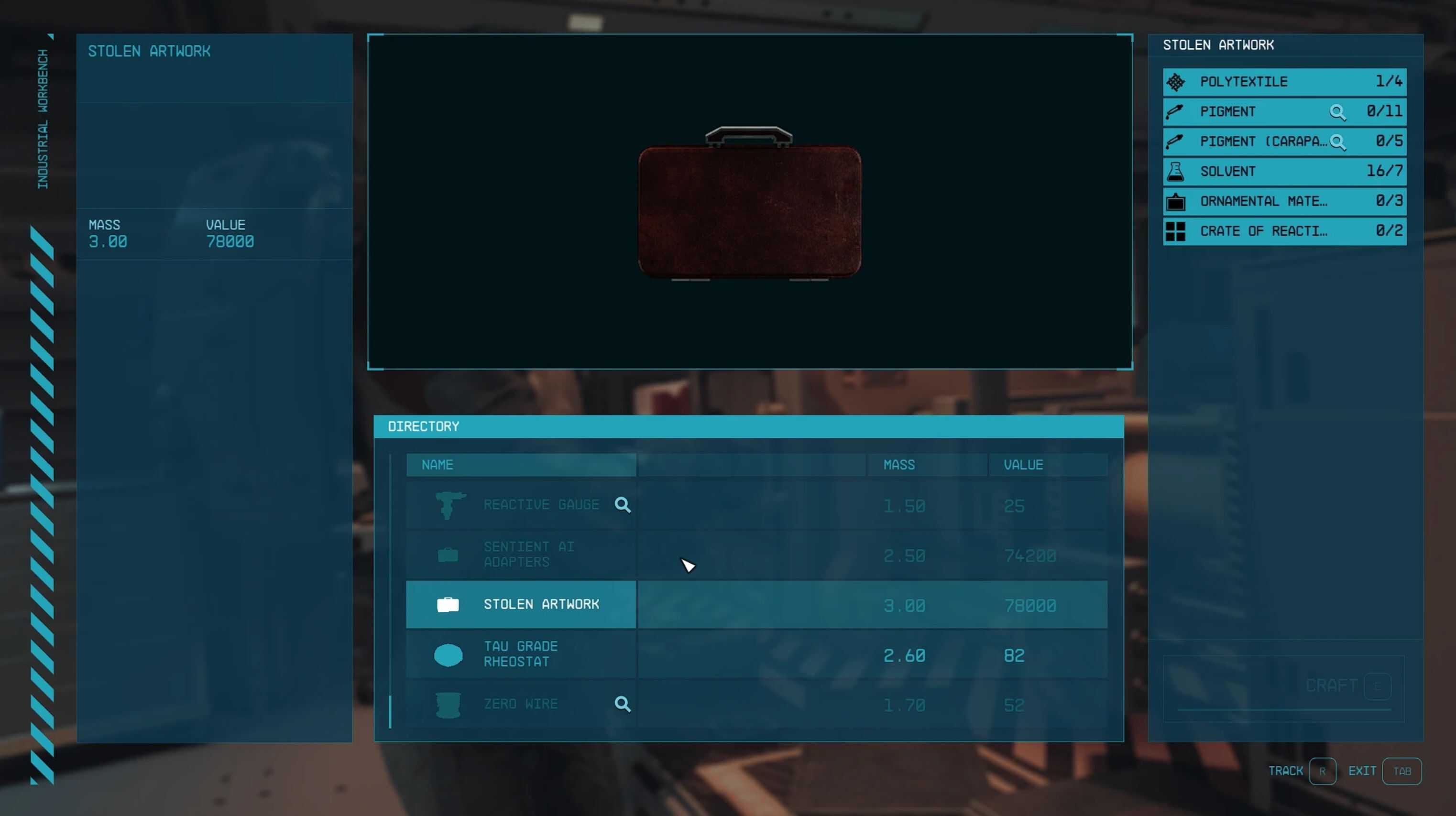 This mod adds crafting for more contraband items. I have currently added Stolen (Forged) Artwork, Sentient AI Adapters and Xenowarfare Tech. You can also bundle (craft at the correct workbench) duplicates into their cargo version, which sell for more credits but also weight more.