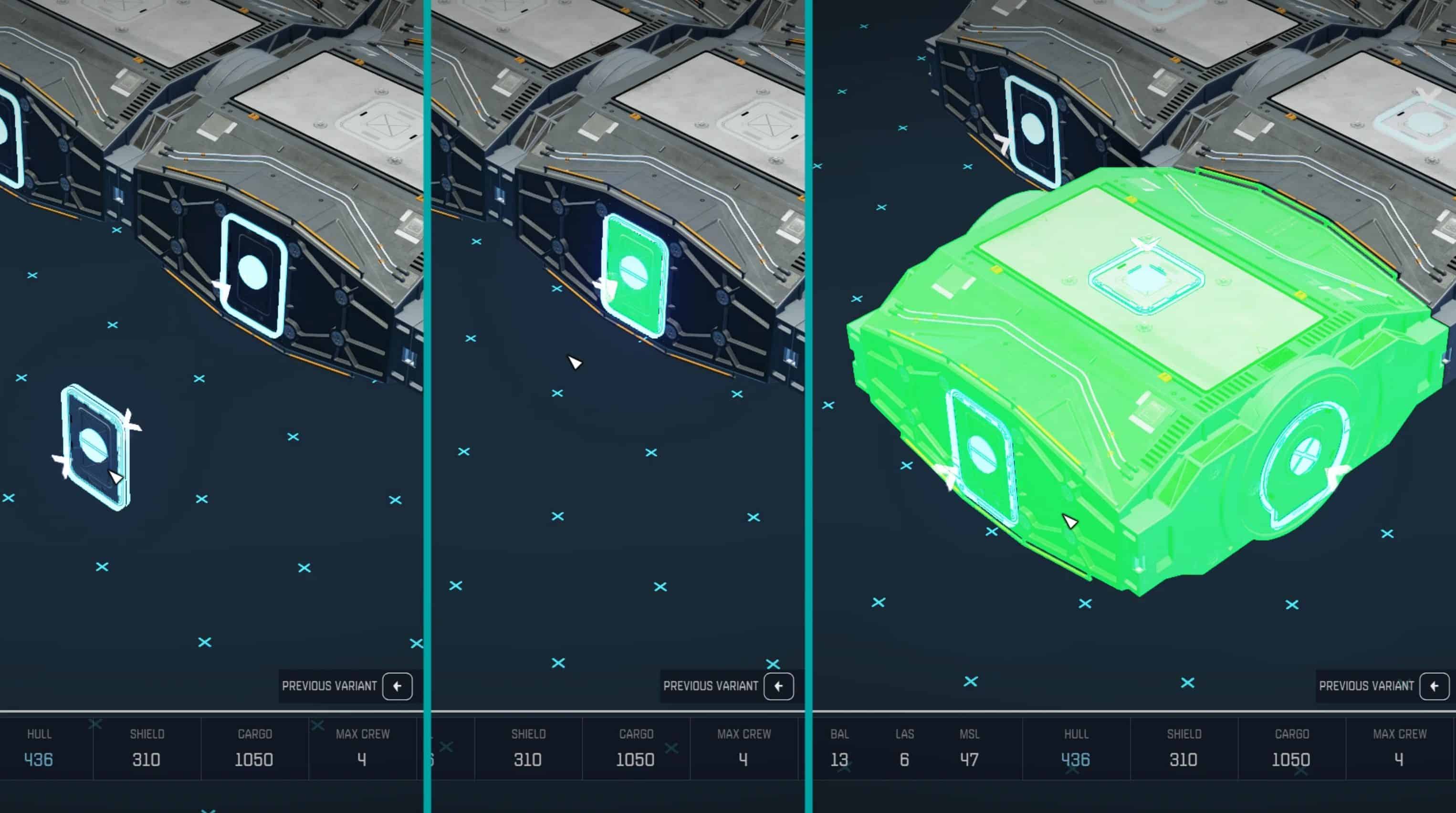 The thickness of the mod elements is only 0.02 units, but if you look closely in the shipbuilder, you can see a small step when snap. For example, place four 1×1 HAB blocks in a square, then move one of the blocks and attach a mod element to one of the sides. When you put the block back, you will notice how it jumps between the two snap points. I didn’t notice that it interfered anywhere. But, just in case, I added spacer elements, you can place them to align the blocks.