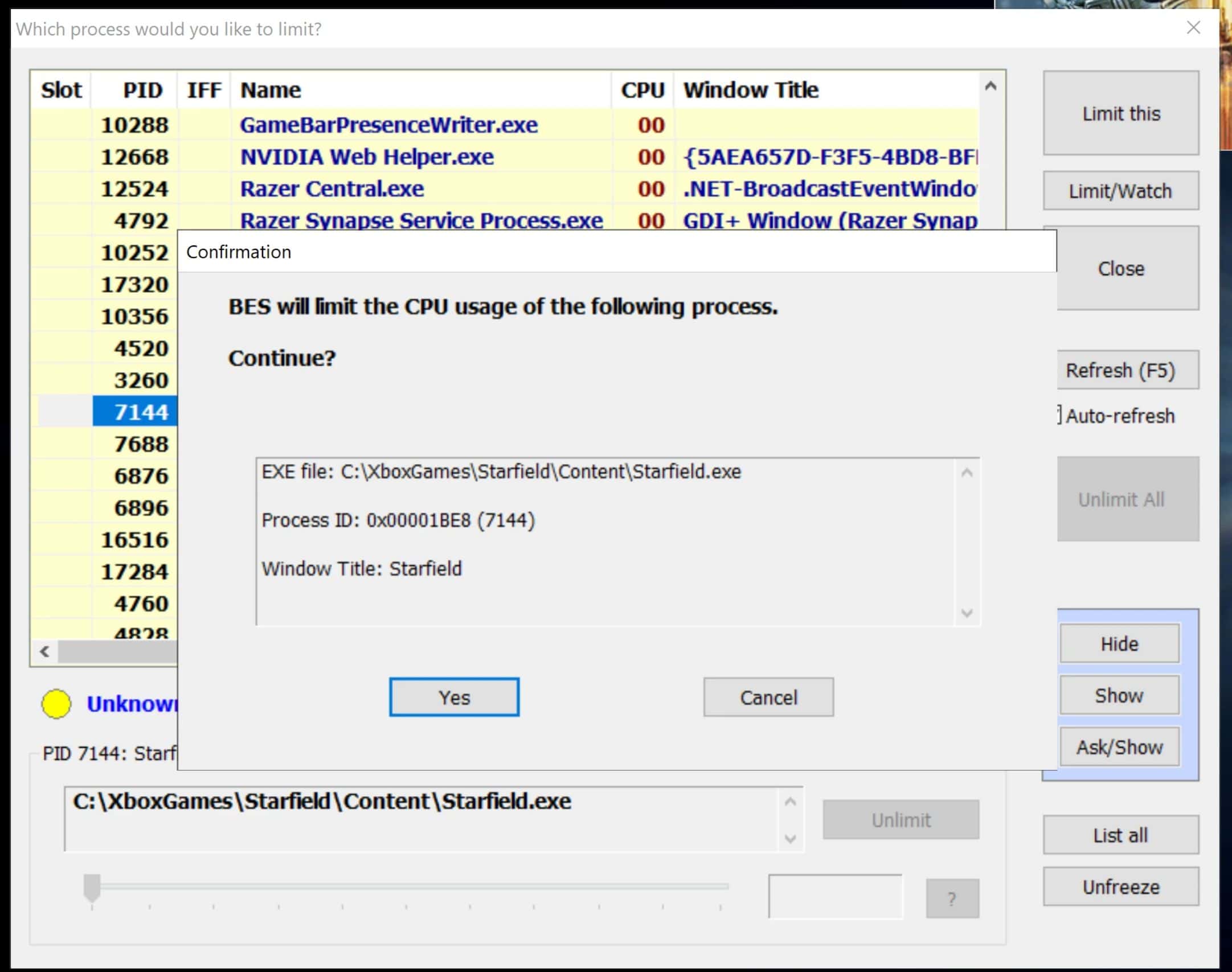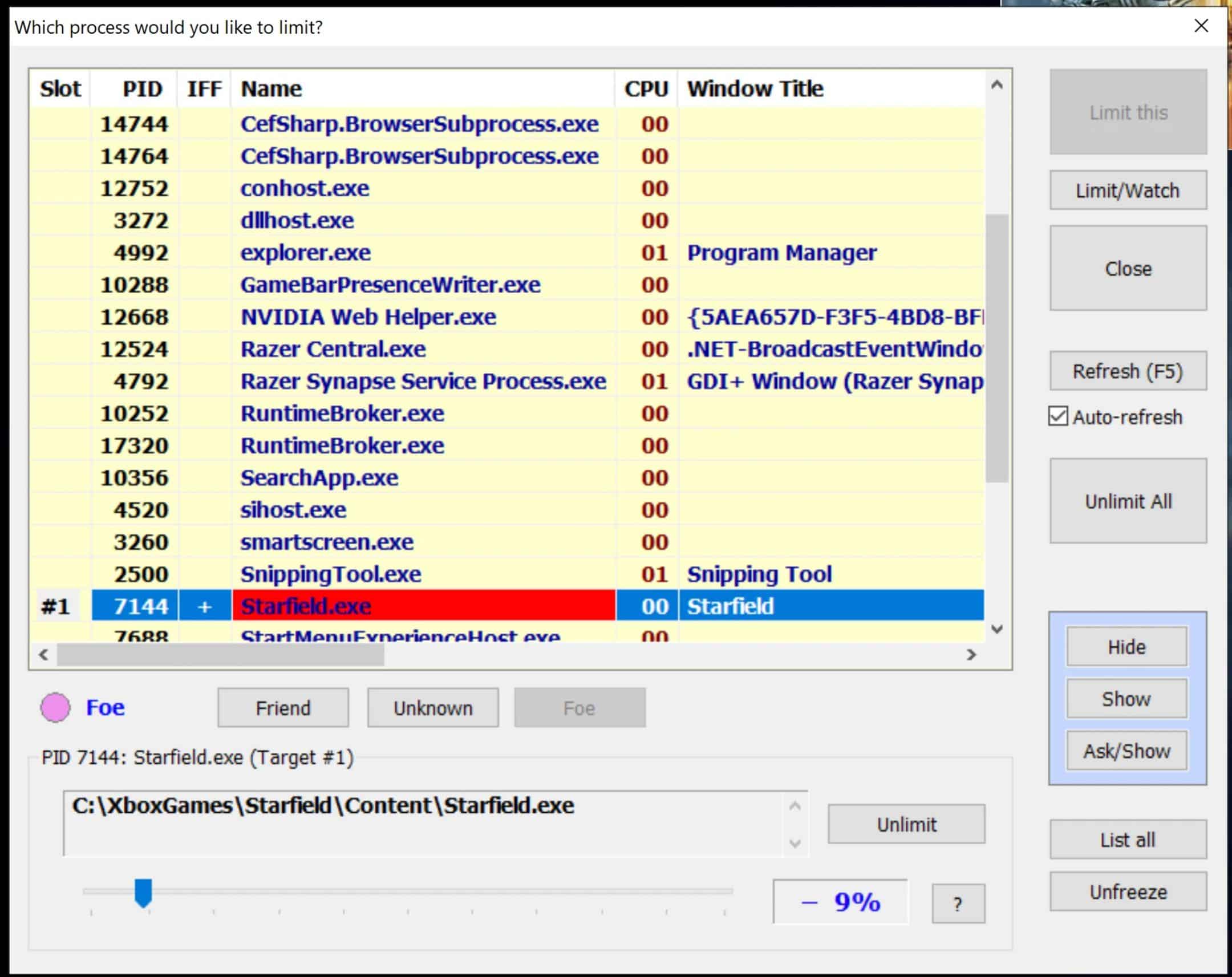 STEP 7: You can X out of that window and ensure on the previous window it says Tartet#1 and the % you are limiting the program. Then DO NOT “X” out of the program. Simply minimize it. It needs to stay running to limit the CPU demand from the game.