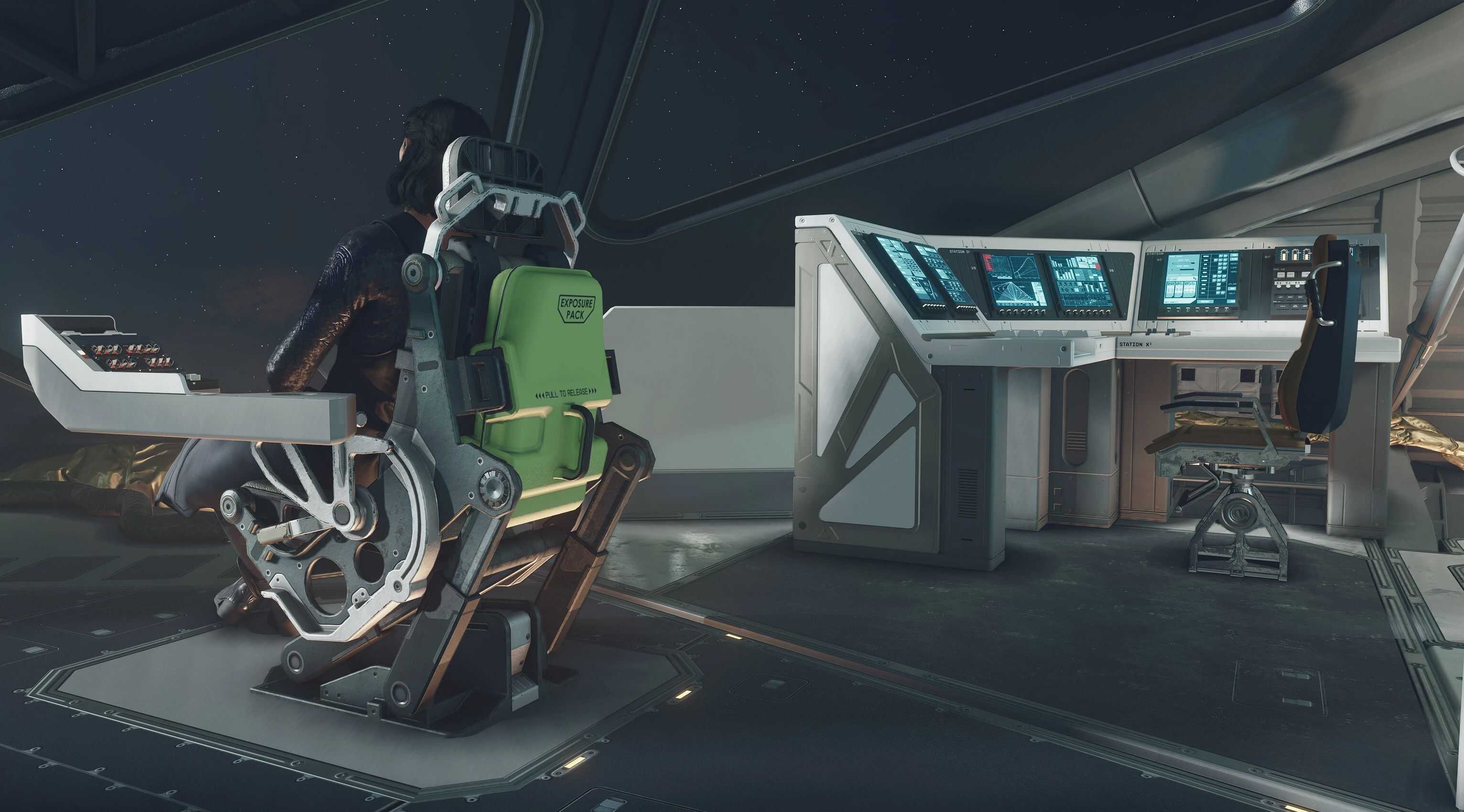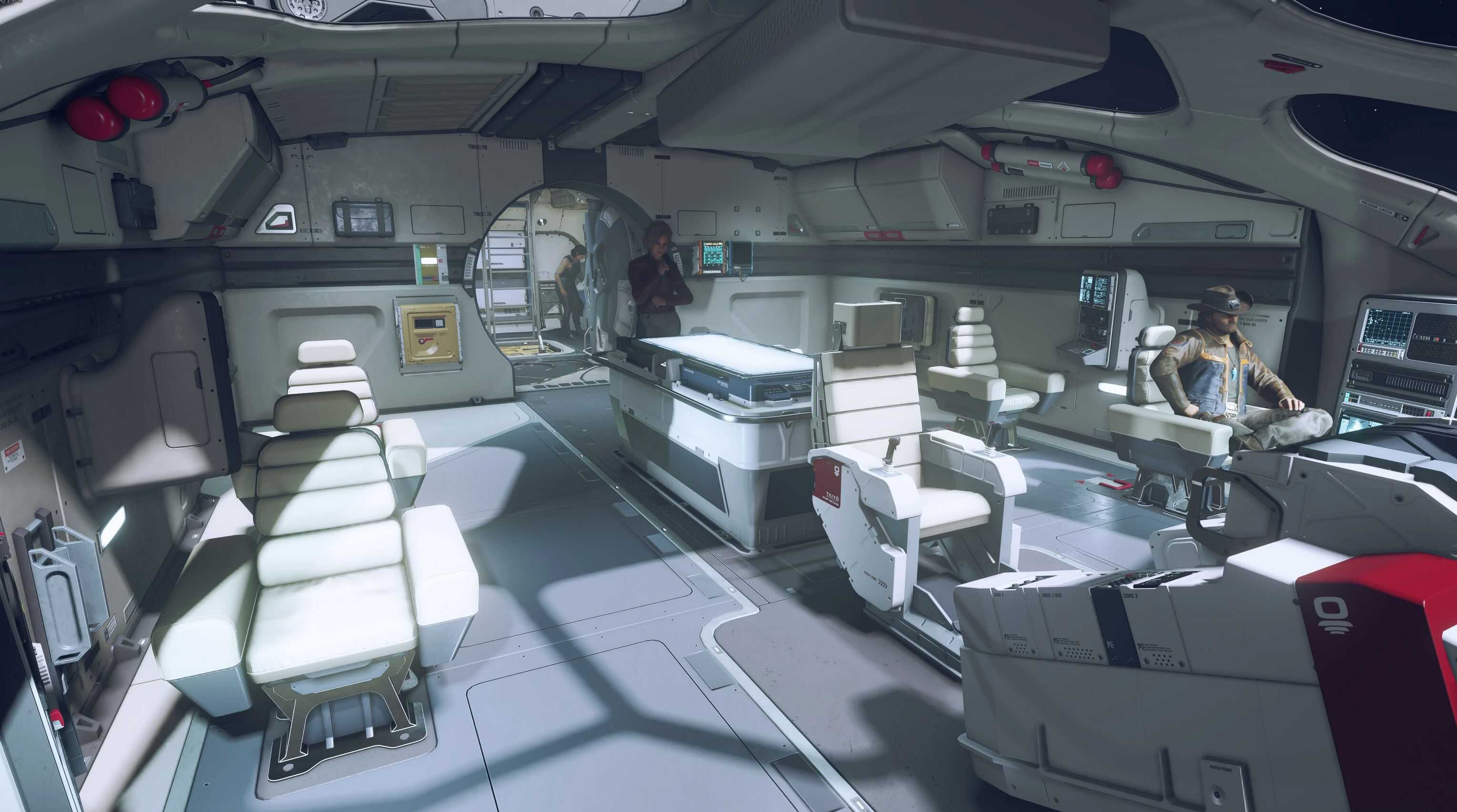 – The larger Kon-Tiki had 6 crew seats scattered around either watching the pilot or looking out the window. I placed them logically and gave them workpads or workstations so they could do something useful.