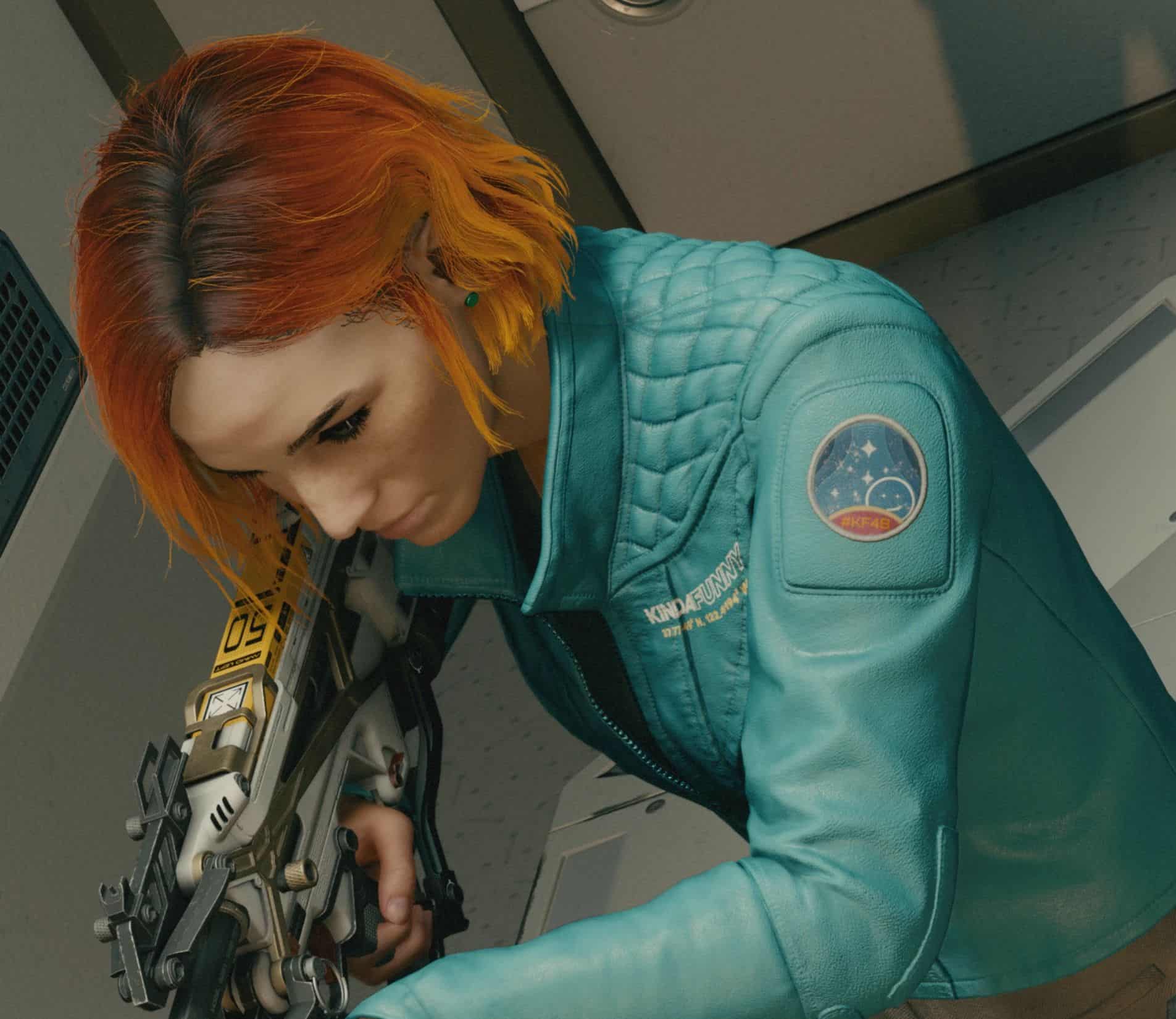 Replace Sarah’s jacket with the Kinda Funny Spare Bedroom Launch Jacket.