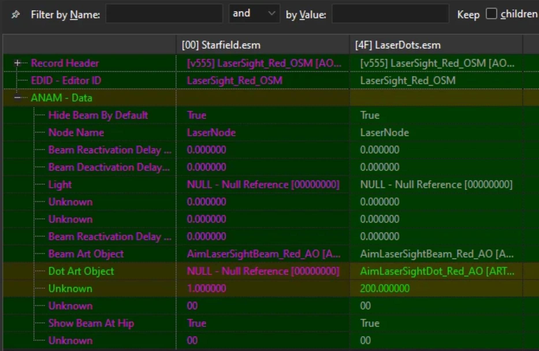The alternate version also swaps the normal beam models for the equivalent mag weapon beam models, which are dimmer but have less thickness variation and a slightly longer visible length.
