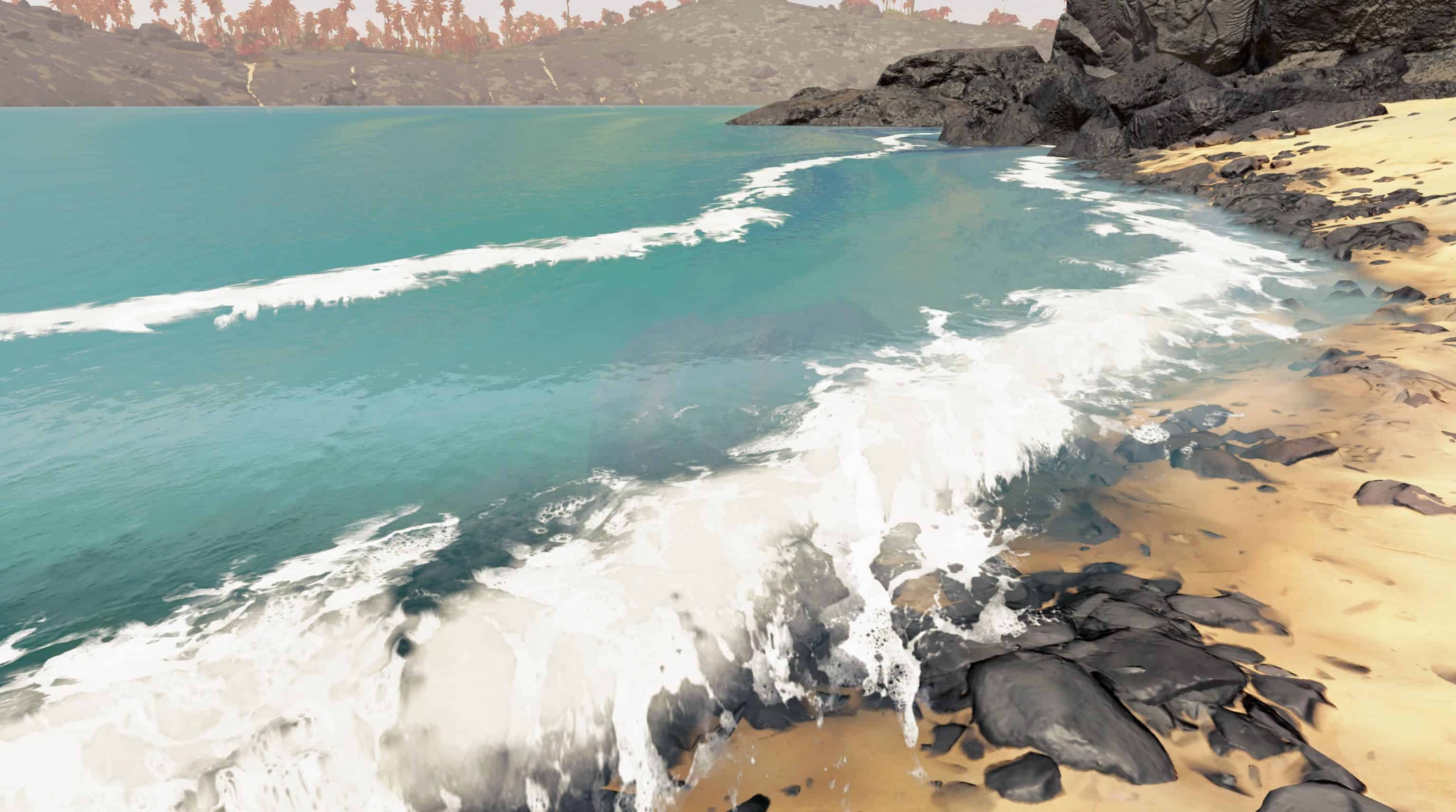 A retexture overhaul of the water of Starfield better blended waves and foam, better waterfall visual.