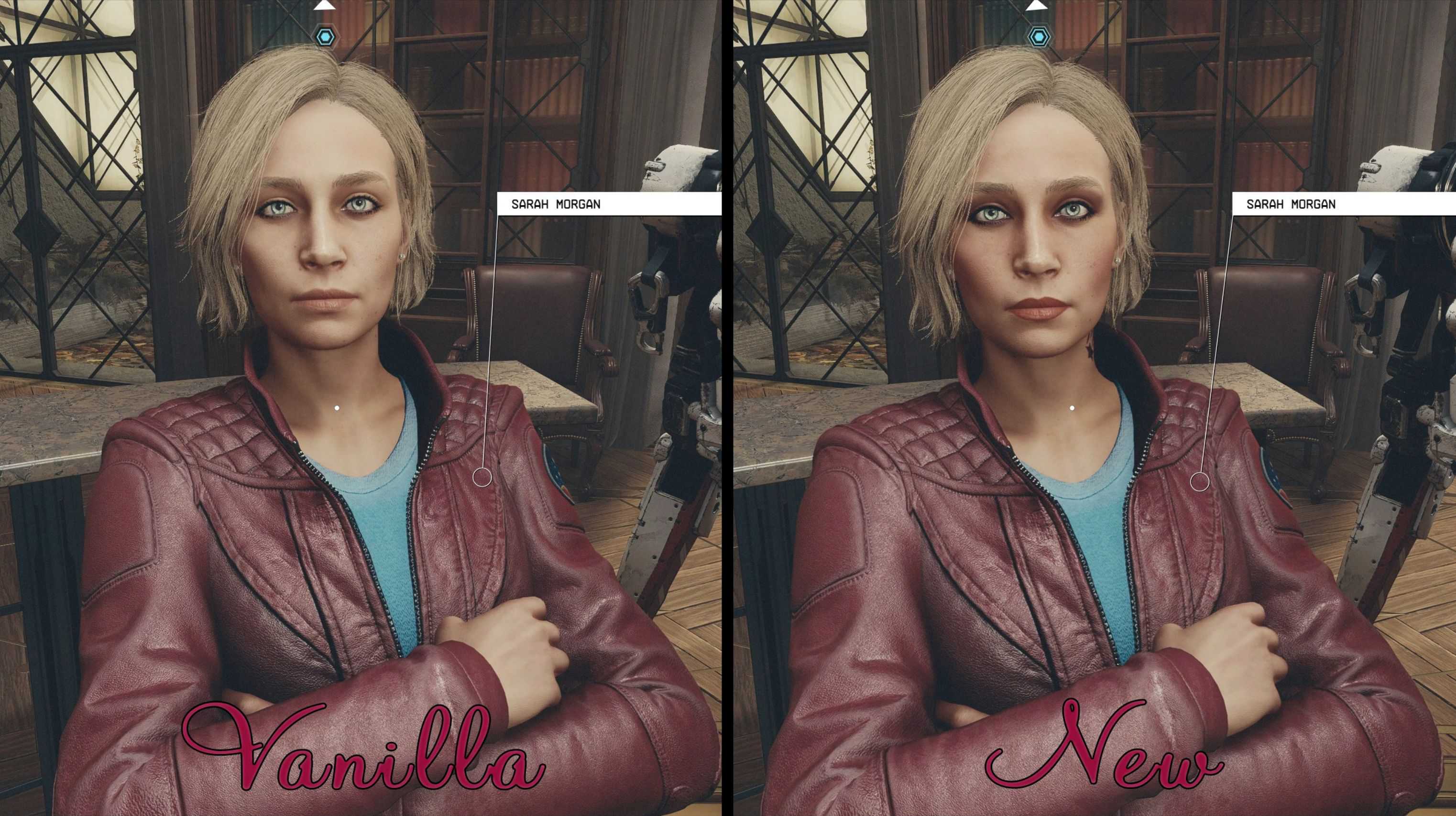 Hello! I was inspired Sarah with make up mod by scottyus1 and i decided to make my own version makeup for Sarah. So, around 5 hours in photoshop(God, what I wasting my life on) and makeup with little falling star tattoo is done.