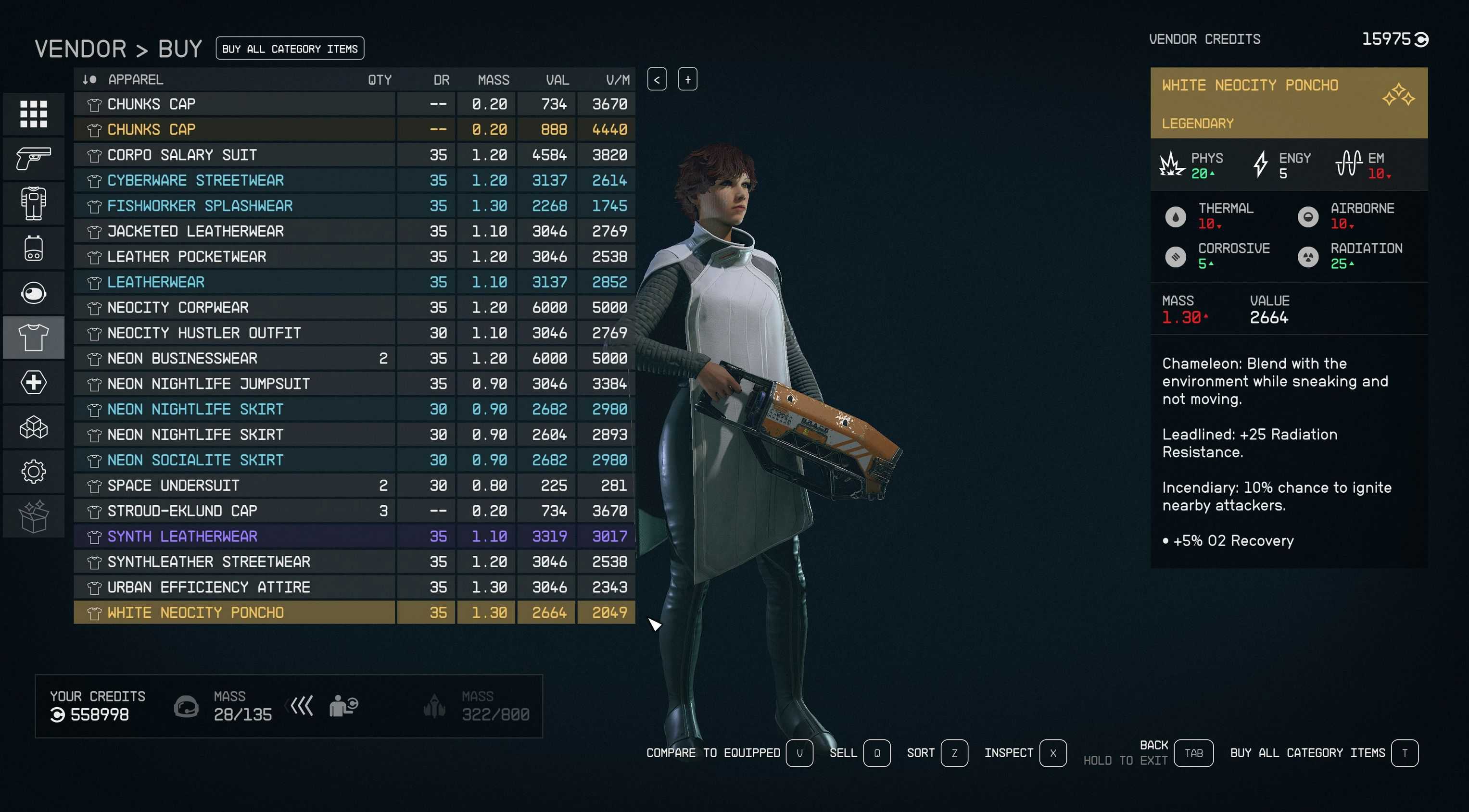 Adds uncommon, rare, and legendary versions of clothing to some loot tables, mostly vendors.