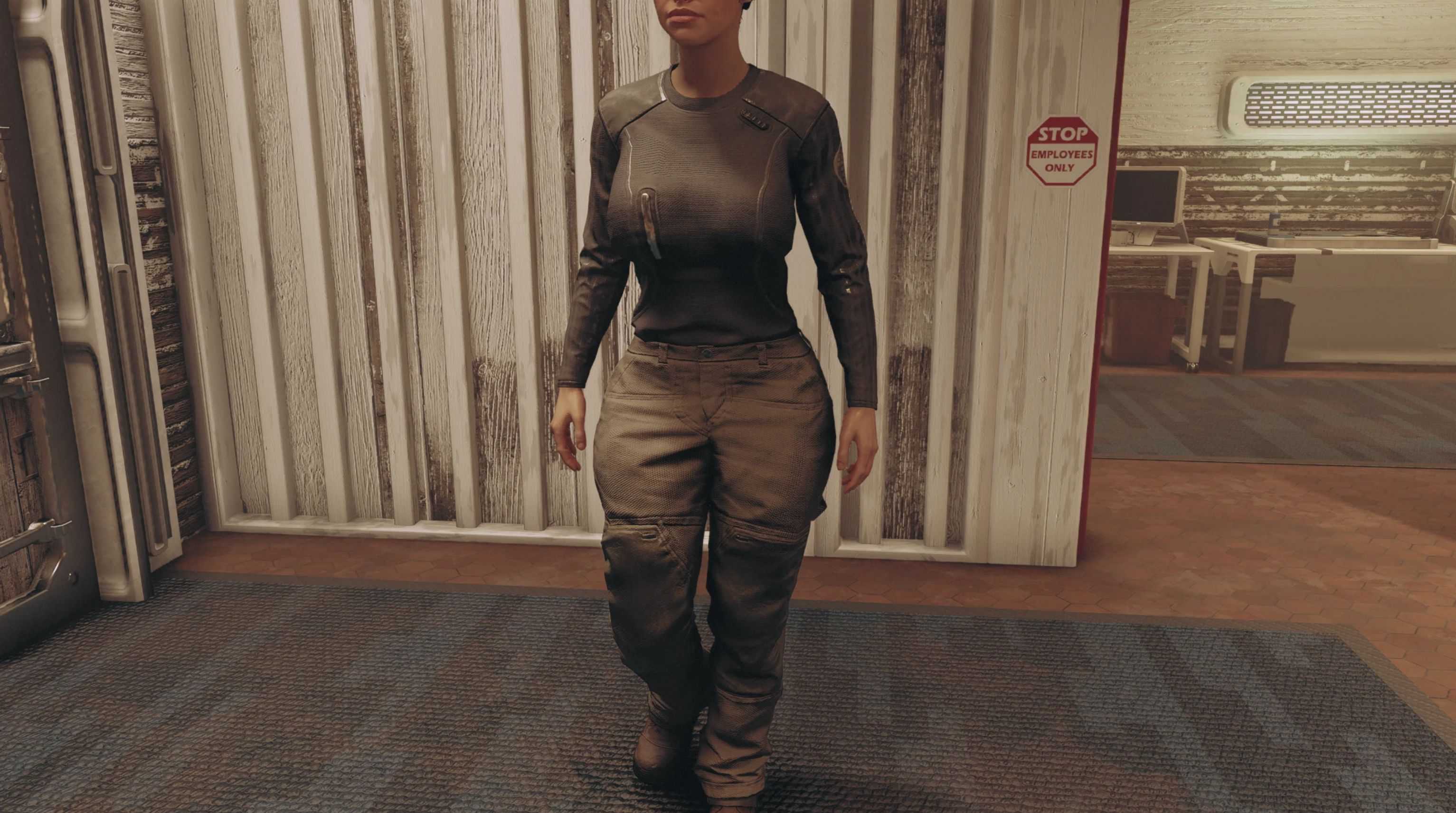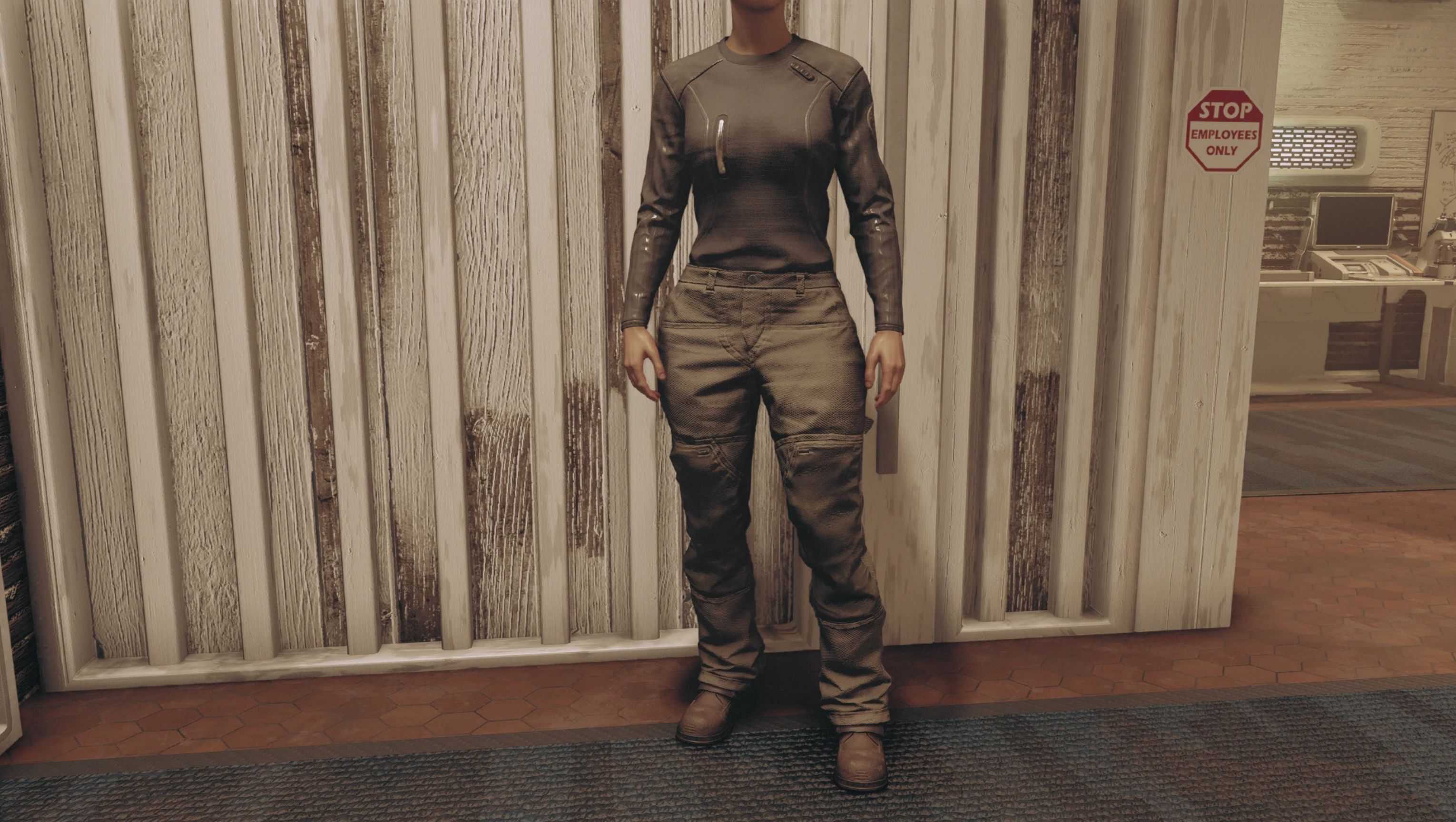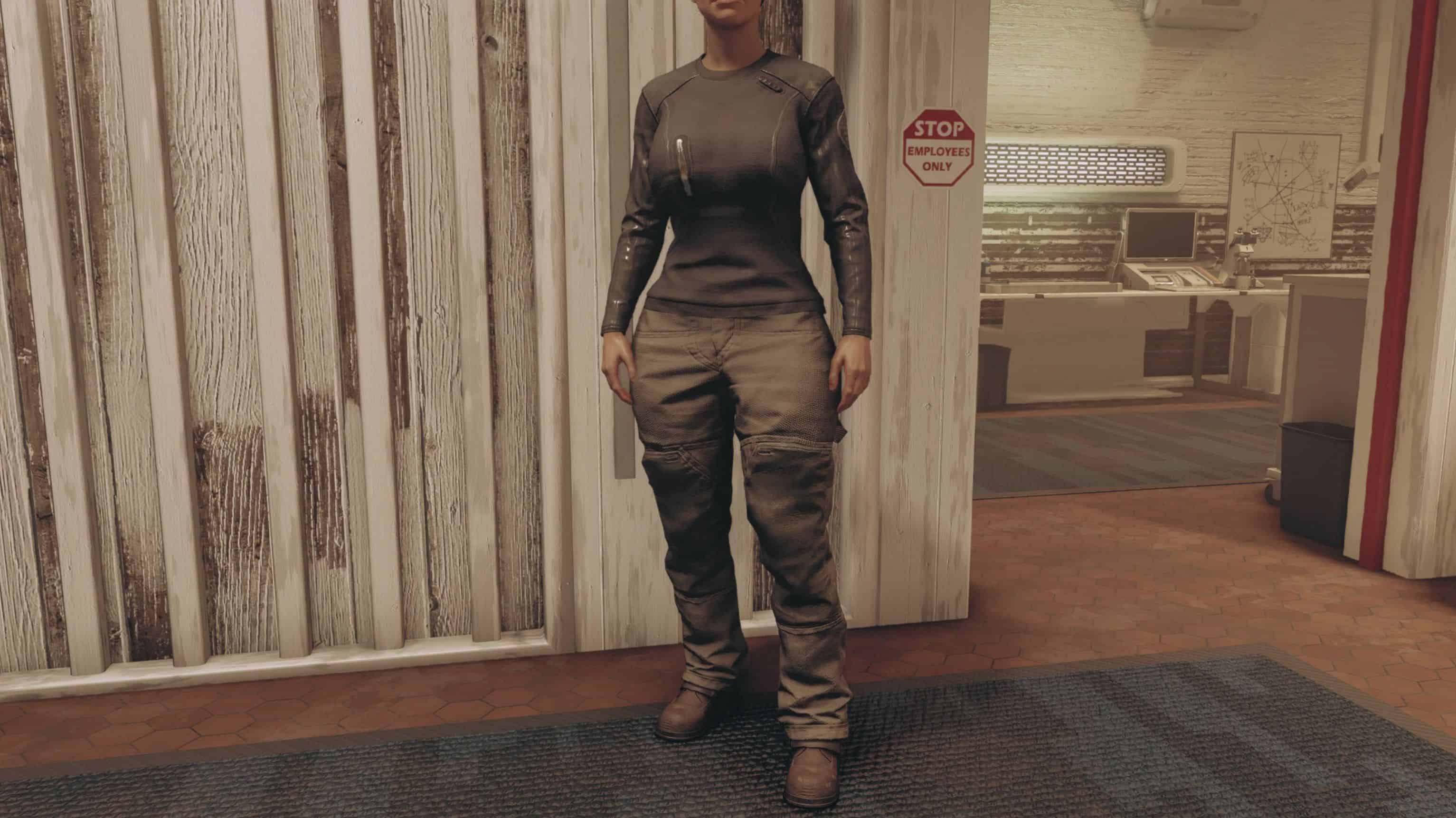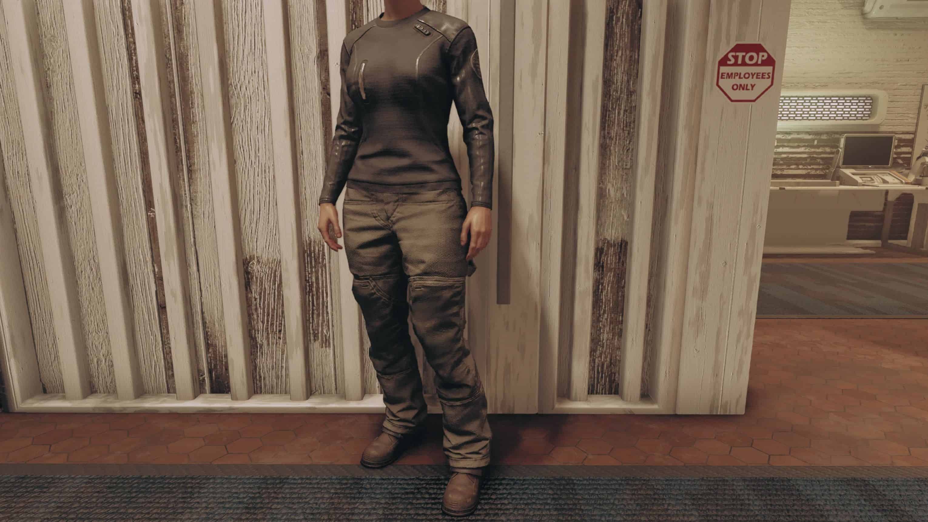 Reshapes the female Space Trucker Cargowear and Blue Collar Offwork Duds. Slimmer waist, bigger thighs\boobs\butt. Options: Slim or Thicker and Tucked or Untucked.