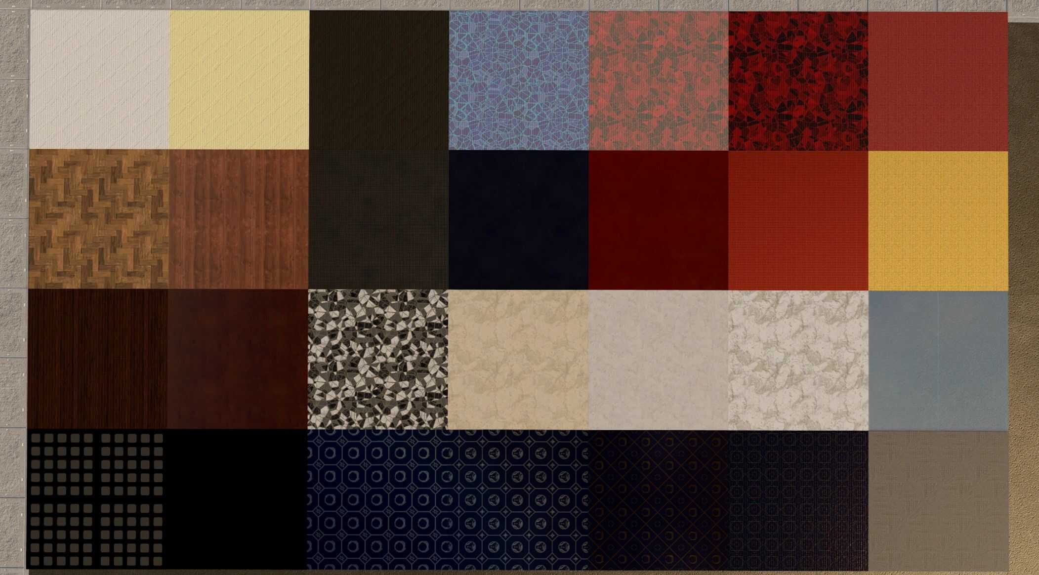– Wooden Floor Tiles: Hardwood, Herringbone, Worn Hardwood, Maple Veneer