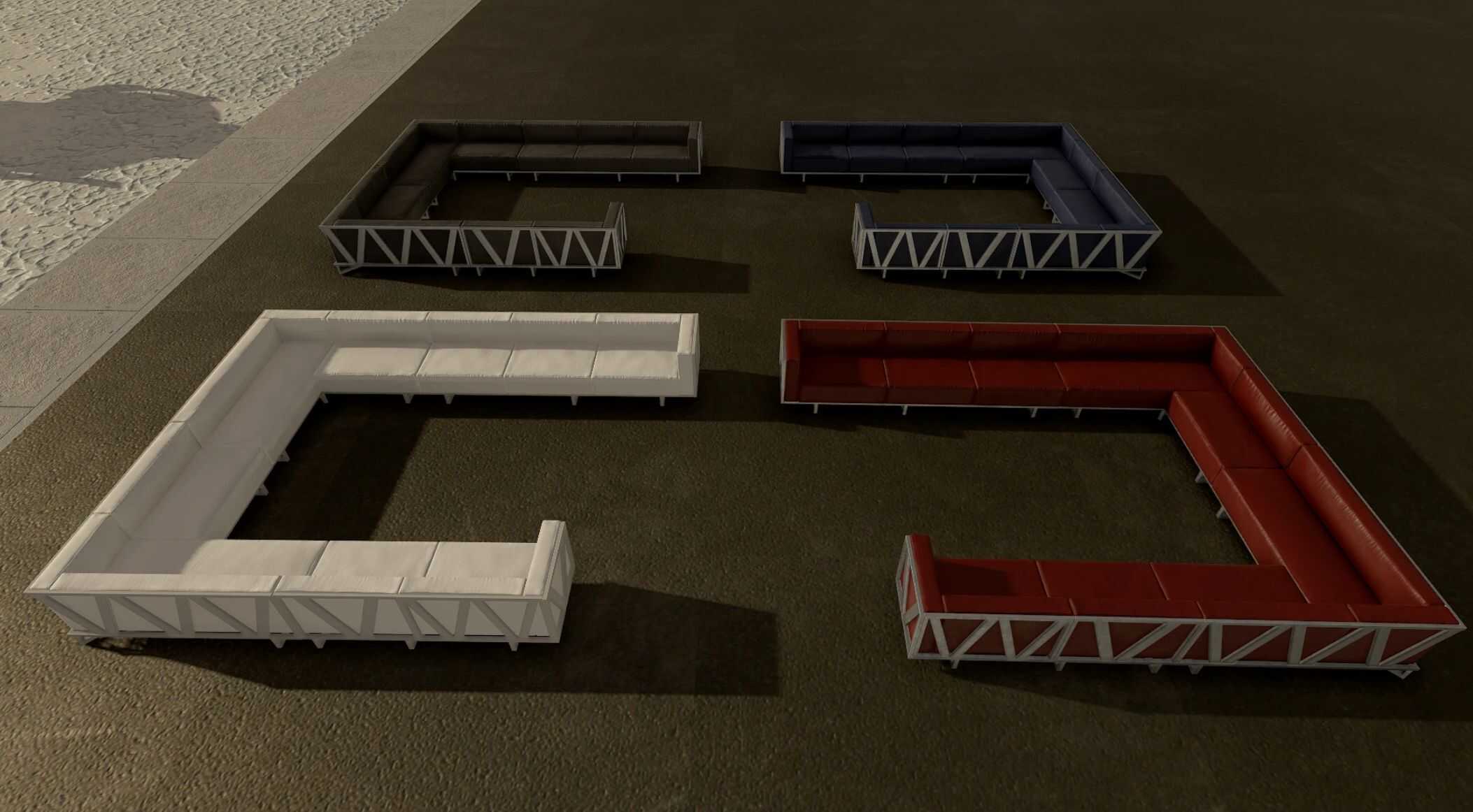 Metal Frame Couches (20) – color options: black, white, blue, red