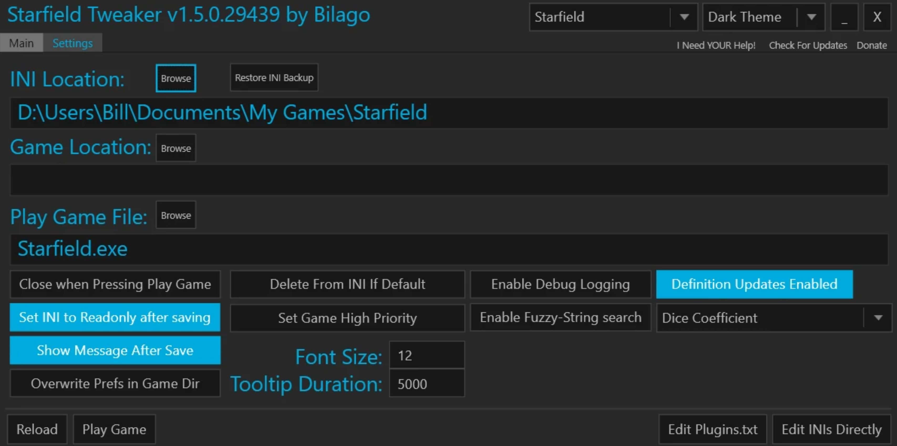 Starfield Configuration Tool – By Bilago