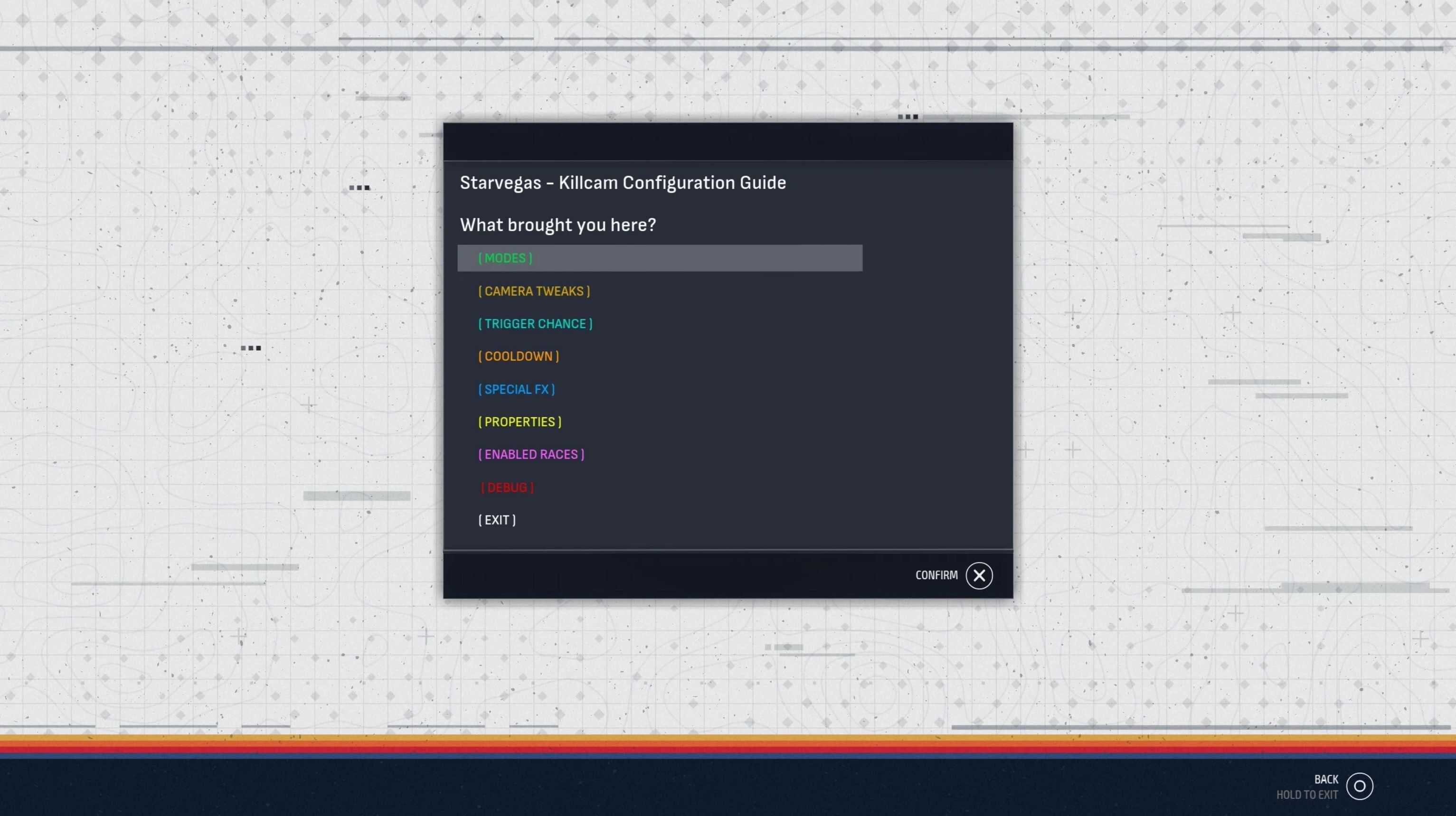 – Modes >>> killcamera trigger modes