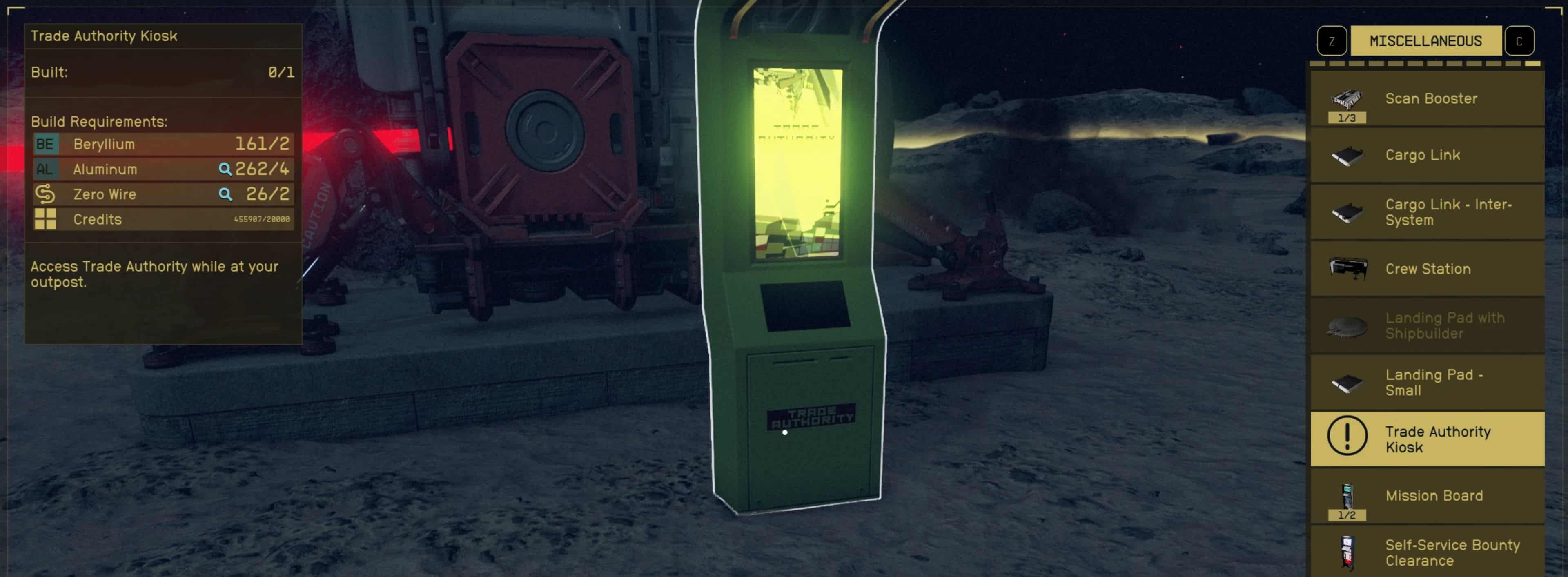 There is an optional file that only adds the Trade Authority Kiosk to the Landing Pad with Shipbuilder, but does not add it as a constructible object. There is another optional file that only adds the Trade Authority Kiosk as a constructible object, but does not add it to the Landing Pad with Shipbuilder.