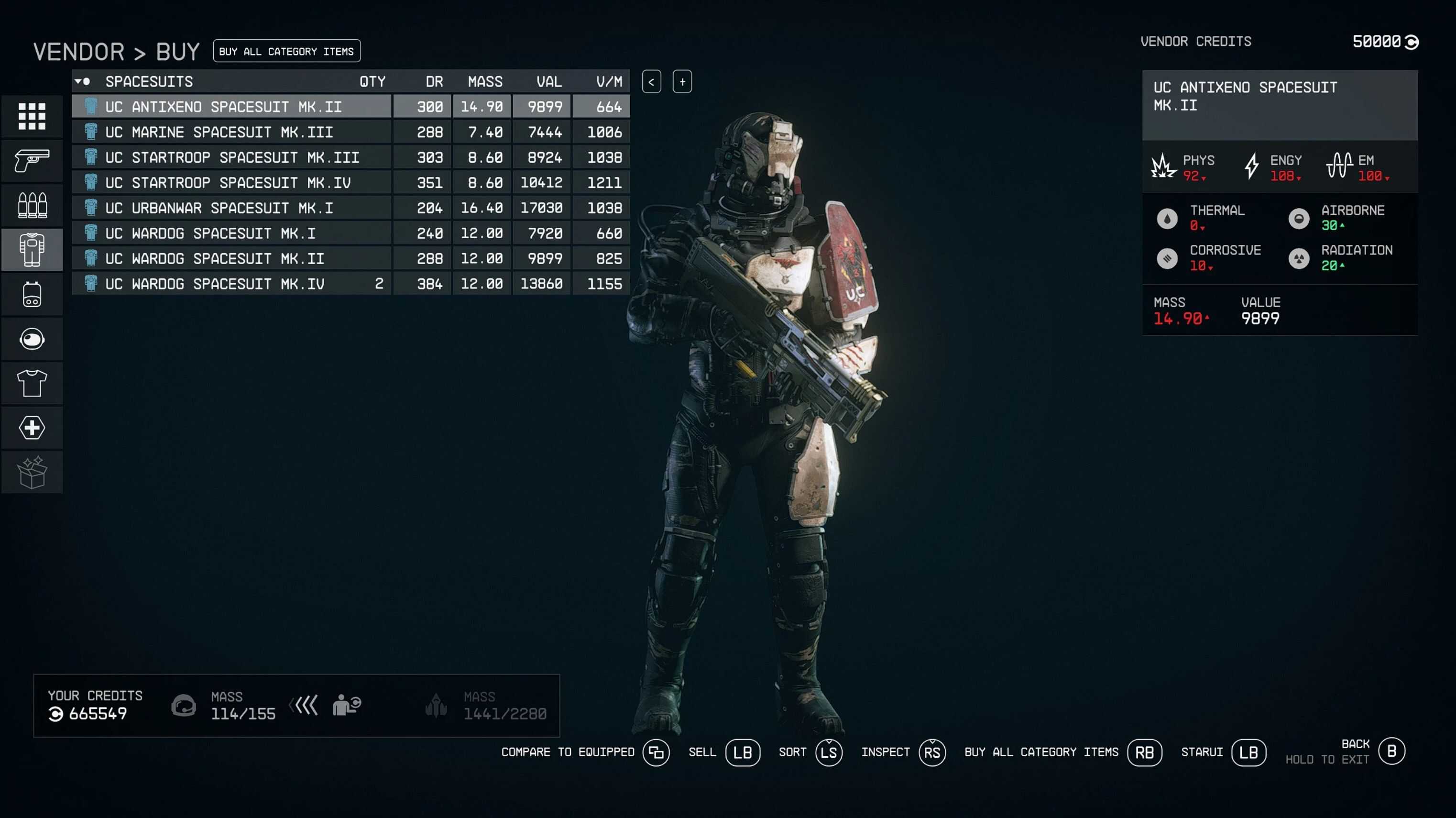 Includes optional file adding non-legendary Antixeno gear to the Red Devils HQ vendor on Mars. Also allows the vendor to sell Armoured Marine and Urbanwar suits above base quality as an added fix.